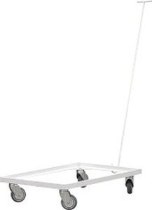 Vozík na přepravky s ojkou, je určen pro plastové přepravky rozměrů 600 x 400 mm,nosnost 200 kg,vozík je vyroben z kovových profilů a ojka z ocelové tyče. Osazen je otočnými koly s pryžovými běhouny šedé barvy, které nezanechávají stopy, průměr kol 75 mm.