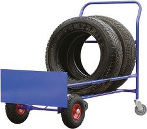 Vozík na pneumatiky s pevnou délkou je určen k převážení pneumatik a kol. Vozík je osazen dvěma foukacími koly na kovovém disku s válečkovým ložiskem vzadu a dvěma otočnými kolečky pro snadnou manipulaci v přední části vozíku u madla.