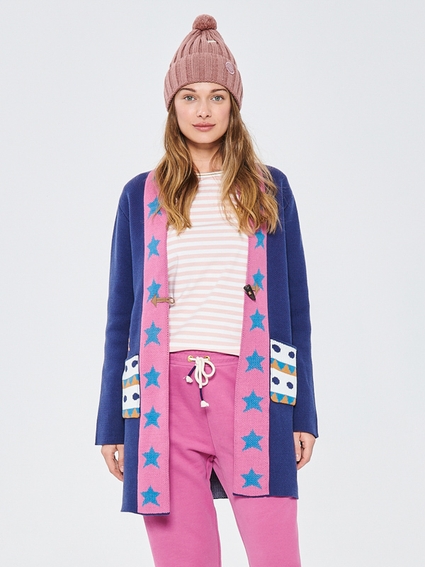 Femi Stories GILIA NVY je parádní dámský svetr se zapínáním na knoflík. Kardigany nikdy nevyjdou z módy a stejně tak tento skvělý kousek. Ideální na každodenní použití, to je svetr od brandu Femi Stories. Elegantní design a skvělá hřejivost, tím tě nadchne svetr Femi Stories GILIA NVY. Stejně tak tě díky použitému materiálu čeká velké pohodlí.