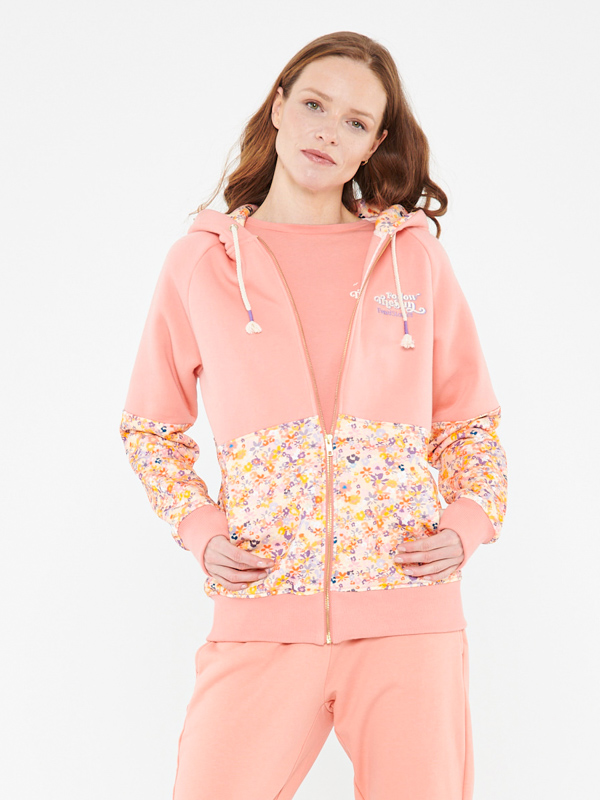 Femi Stories TITO HMDW je skvělá dámská mikina se zapínáním na zip s kapucí. Ideální na každodenní nošení, to je mikina od brandu Femi Stories. Díky použitým materiálům tě mikina zahřeje za skoro každé situace. A co tě zahřeje? Je to softshell, který je známý právě pro svoji hřejivost. V přední části jsou dvě kapsy a stejně tak je na hrudi malé, vyšívané logo Femi Stories. Prostorná stahovací kapuce je samozřejmostí! A na co nesmíme zapomenout, tak to jsou krásné letní motivy, které proplouvají celou mikinou.