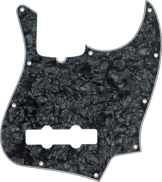 Pickguard Originální čtyřvrstvý pickguard Fender, vhodný pro čtyřstrunné modely Jazz Bass ze sérií American, American Standard, American Vintage, Standard a Deluxe. Pickguard se upevňuje pomocí deseti šroubů (nejsou součástí balení) a je vybaven drážkou pro nastavování výztuhy krku.