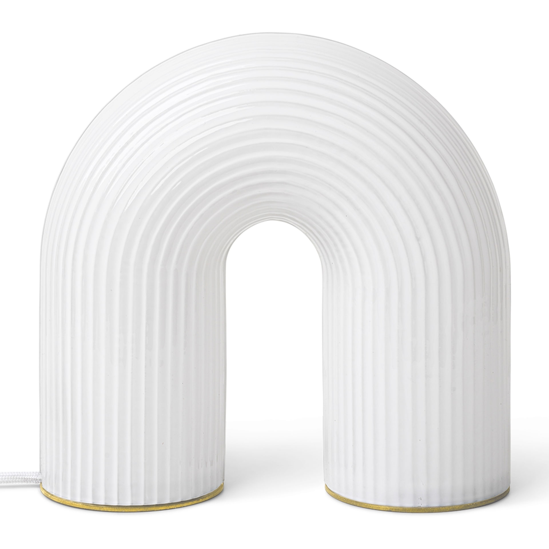 Ferm Living Stolní lampa Vuelta White, bílá barva, sklo, kov. Pomůže vám navodit hřejivé zákoutí. Přenese na vás svůj klid, pohladí příjemným světlem a interiér doplní dechberoucí elegancí. Exkluzivní stolní lampa od dánské značky Ferm Living je připravena vnést do prostoru přesně to, po čem prahne.
