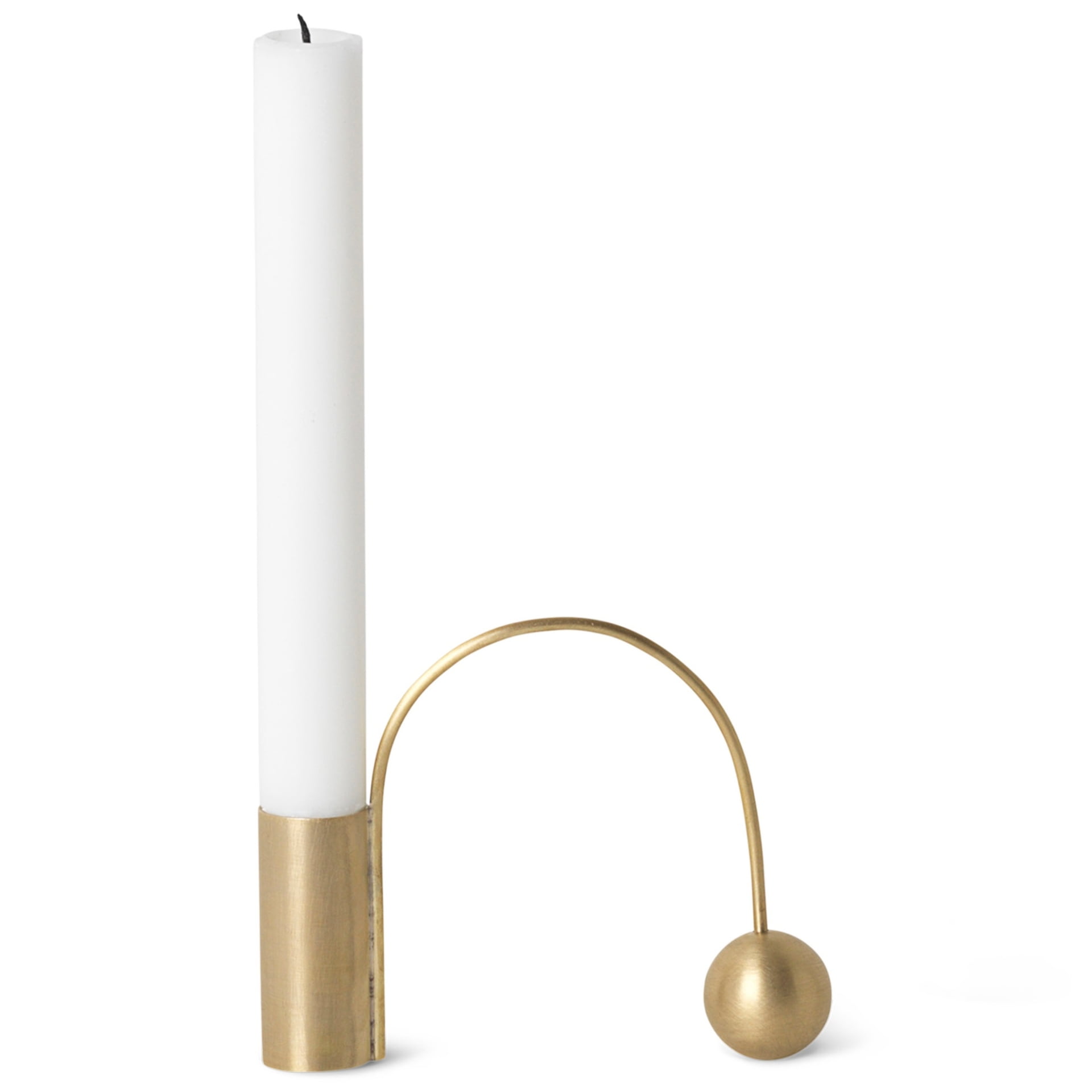 Ferm Living Kovový svícen Brass Balance Candle Holder, zlatá barva, kov. Designový svícen ve zlaté barvě je díky svému tvaru přímo předurčen strhnout na sebe veškerou pozornost! Jedná se o nový designový svícen, který skvěle vypadá se svíčkou i bez ní a může jej použít při romantické večeři i jako součást vánočně laděných zátiší.