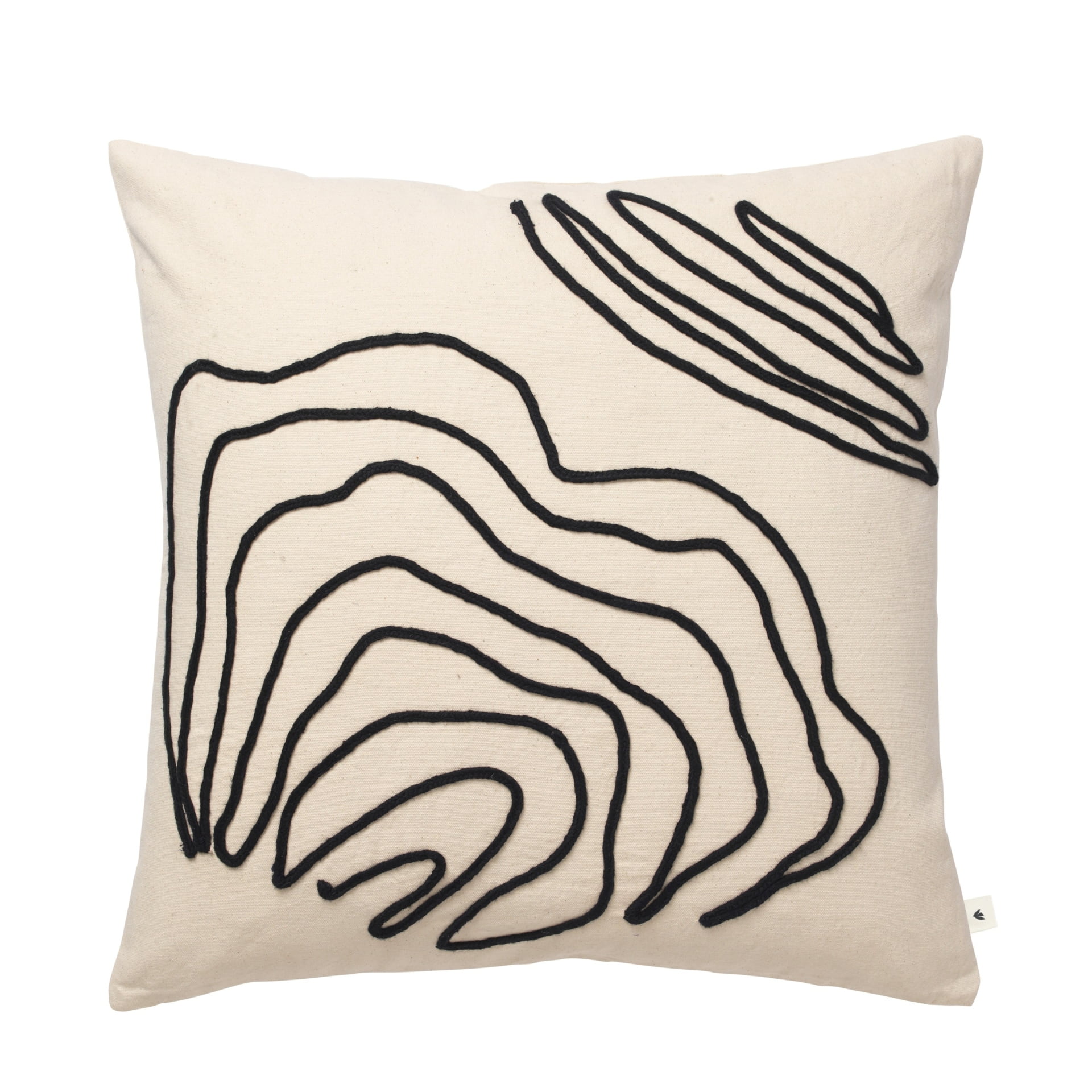 Inspiraci čerpá z jemných otisků pobřeží a nenápadných stop po vodních proudech. Na strukturovaném plátně z přírodní bavlny vynikají kontrastní bavlněné výšivky, které jsou pečlivě ručně našity, aby co nejlépe vystihly pohyb a rytmus přírody.
