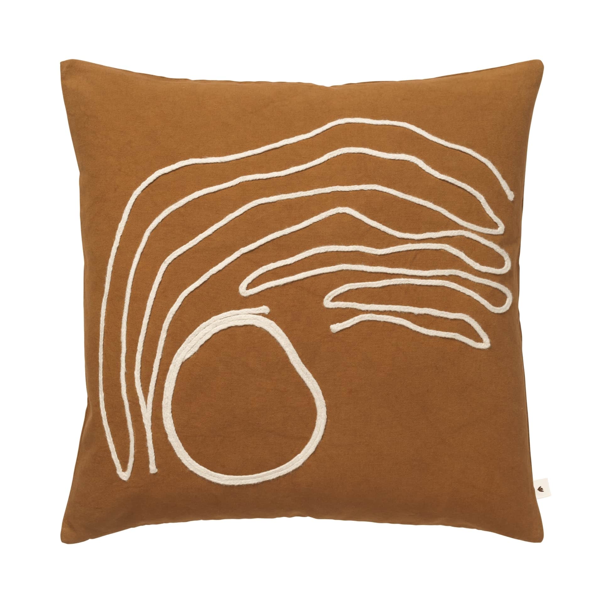 Ferm Living Povlak na polštář s výšivkou Aged Gold 50 x 50 cm, hnědá barva, textil. Díky tomuto originálnímu povlaku na polštář od dánské značky Ferm Living dodáte místnosti moderní umělecký nádech. Máte-li rádi osobité bytové doplňky, bude tento polštář por vás tím pravým oživením pokoje.