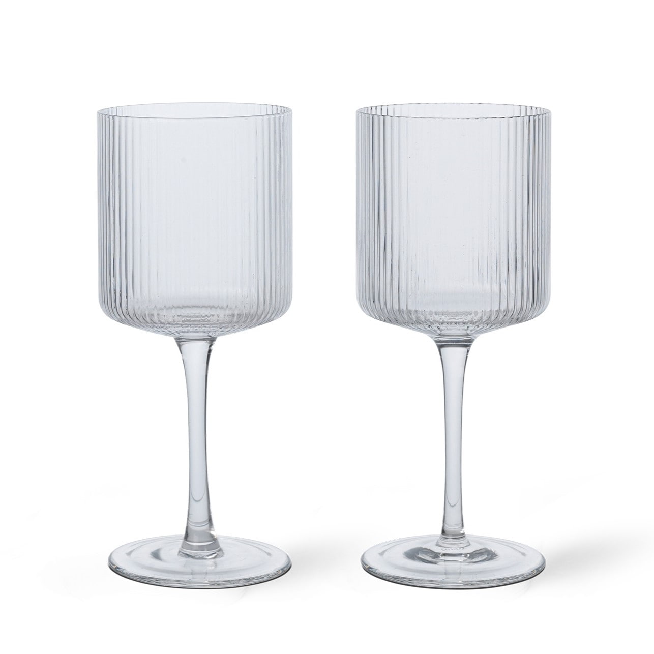 Ferm Living Sklenice na bílé víno Ripple Clear – set 2 ks, čirá barva, sklo. Ikonická kolekce skleněného nádobí Ripple od dánské značky ferm LIVING se rozrostla o další designové radosti.