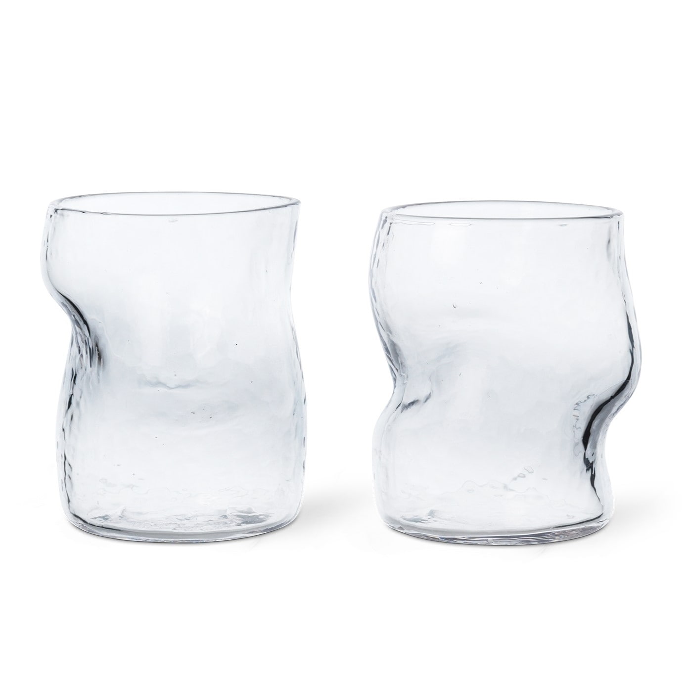 Ferm Living Sklenice na vodu Dimple 270 ml – set 2 ks, čirá barva, sklo. Sklenice na vodu Dimple od ferm LIVING přitahují pozornost svým organickým designem, který jde ruku v ruce s trendy moderního bydlení.