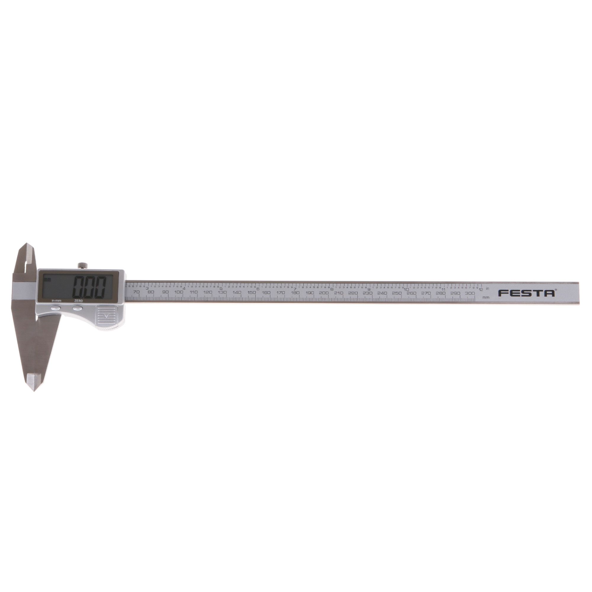 Digitální posuvné měřítko FESTA 300 mm s přesností 0,01 mm je precizní měřicí nástroj s rozšířeným rozsahem měření, ideální pro větší obrobky a profesionální použití. Přehledný LCD displej umožňuje rychlé odečítání výsledků, s možností přepínání mezi milimetry a palci. Díky šroubkové aretaci lze snadno zafixovat naměřenou hodnotu a bezpečně ji přenést. Měřítko je vyrobeno z nerezové kalené oceli, což zaručuje vysokou odolnost a dlouhou životnost i při intenzivním používání.Klíčové vlastnosti• Rozsah měření 0–300 mm• Vysoká přesnost: 0,01 mm• Přehledný digitální LCD displej • Přepínání mezi jednotkami mm / inch (palce)• Možnost měření vnějších, vnitřních rozměrů, hloubky i odchylek• Šroubková aretace pro fixaci hodnoty• Vyrobeno z nerezové kalené oceli✔ Profesionální přesnost pro jemná i technická měření✔ Univerzální použití – od strojírenství přes údržbu až po hobby projekty✔ Snadná čitelnost díky digitálnímu displeji✔ Odolná konstrukce zaručuje dlouhou životnost i při častém používání✔ Praktické balení v plastové krabičce pro bezpečné uloženíTechnická specifikace• Značka / model: FESTA• Typ: digitální posuvné měřítko• Rozsah měření: 0–300 mm• Přesnost: 0,01 mm• Materiál: nerezová kalená ocel• Displej: digitální LCD• Napájení: knoflíková baterie LR44• Balení: plastová krabička