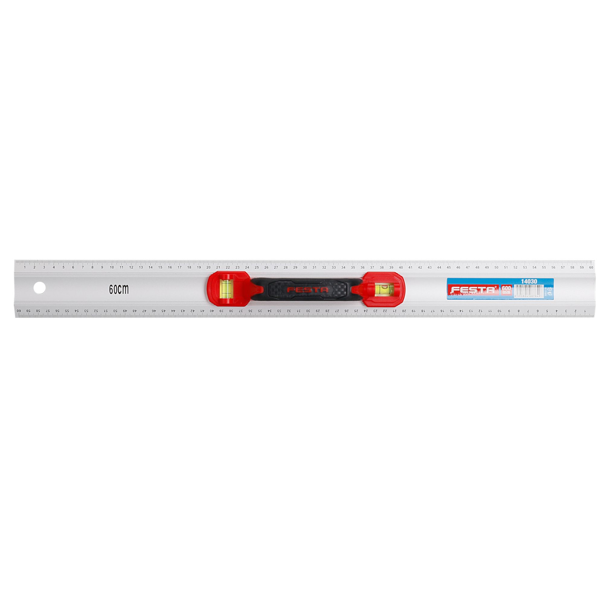 Hliníkové pravítko s plastovou rukojetí a se zesíleným profilem, který zajišťuje jeho pevnost a vyšší odolnost. Pravítko je navíc opatřeno dvojicí libel, které slouží pro orientační měření. Druh stupnice: mm Přesnost stupnice: 1 mm Délka stupnice: 600 mm