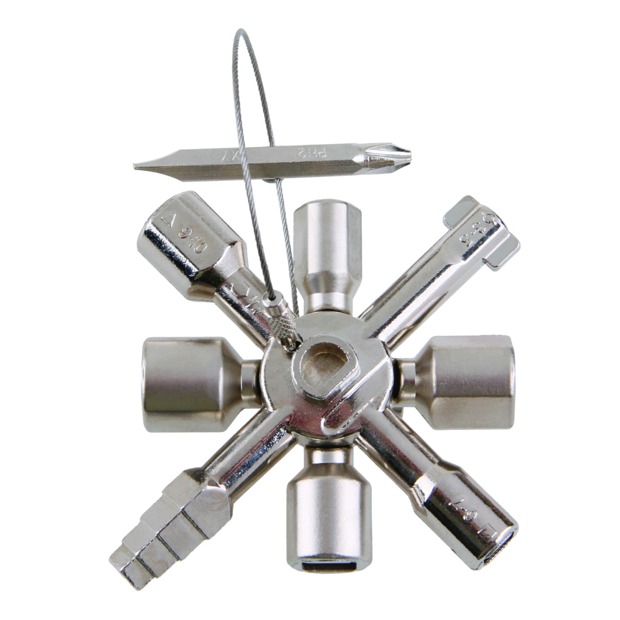 Univerzální klíč pro otevírání rozvodných skříní různých médií. Vhodné pro elektrické rozvaděče, plynové a vodoměrné skříně, pro klimatizaci, ventilaci a odvzdušňování topení. Vhodný také pro kliky oken či dveří a pro komínová dvířka.