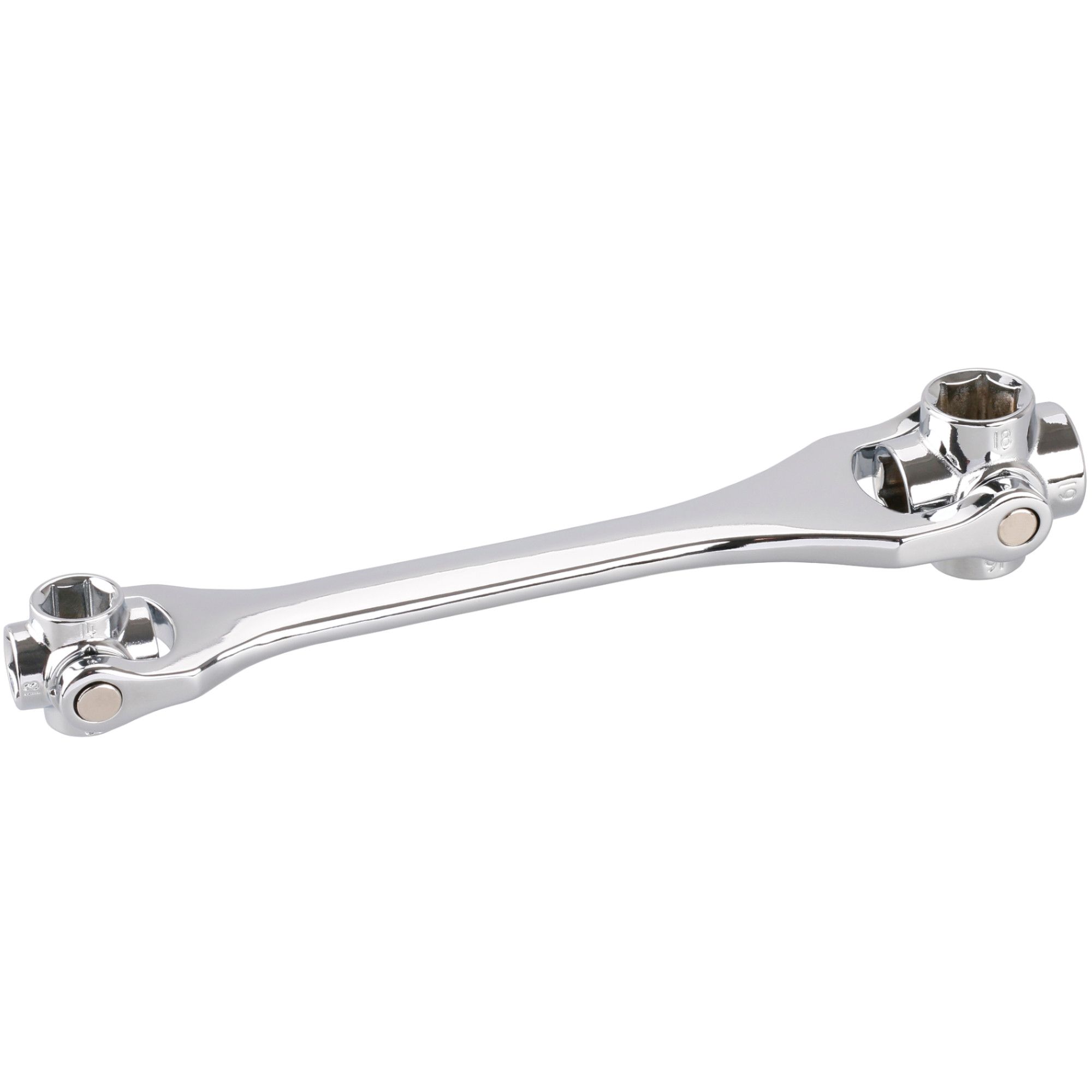 Univerzální oboustranný klíč 12–19 mm je praktický nástroj vyrobený z vysoce kvalitní chrom-molybdenové oceli (Cr-Mo), která zaručuje vysokou pevnost, odolnost vůči opotřebení a dlouhou životnost.Díky otočným hlavám na čepech nabízí tento klíč široké využití při práci s různými velikostmi matic a šroubů – a to bez nutnosti výměny nástroje.Každá strana klíče má čtyři velikosti nástrčných hlav (12–13–14–15 mm a 16–17–18–19 mm), což umožňuje efektivní a pohodlnou práci v dílně, garáži i domácnosti.Robustní konstrukce a ergonomický tvar zajišťují přesné utažení i povolení šroubů bez poškození spojů.Klíčové vlastnosti:• Rozsah velikostí: 12–19 mm (8 rozměrů v jednom nástroji)• Materiál: chrom-molybdenová ocel (Cr-Mo) – vysoká pevnost a odolnost• Oboustranný design – dvě otočné hlavy pro různé rozsahy velikostí• Otočné čepy – snadný přístup i do hůře dostupných míst• Univerzální použití – nahrazuje sadu běžných klíčů• Pevné zpracování a dlouhá životnost ✔ Utahování a povolování šroubů a matic různých velikostí✔ Dílenské, montážní a opravárenské práce ✔ Ideální pro auta, motocykly, kola, zahradní techniku ✔ Vhodný pro mechaniky, údržbáře i kutily Technické parametry:• Rozsah velikostí: 12–13–14–15 mm / 16–17–18–19 mm• Materiál: chrom-molybdenová ocel (Cr-Mo)• Provedení: oboustranné, s otočnými hlavami• Hmotnost: 0,53 kg• Značka: FESTAUniverzální klíč FESTA 12–19 mm je spolehlivý pomocník, který nahradí celou sadu klasických klíčů.Díky otočným hlavám a odolné konstrukci z Cr-Mo oceli umožňuje rychlou a efektivní práci při montážích i opravách.Ideální volba pro všechny, kdo vyžadují kvalitní, odolné a univerzální nářadí v jednom kompaktním provedení.