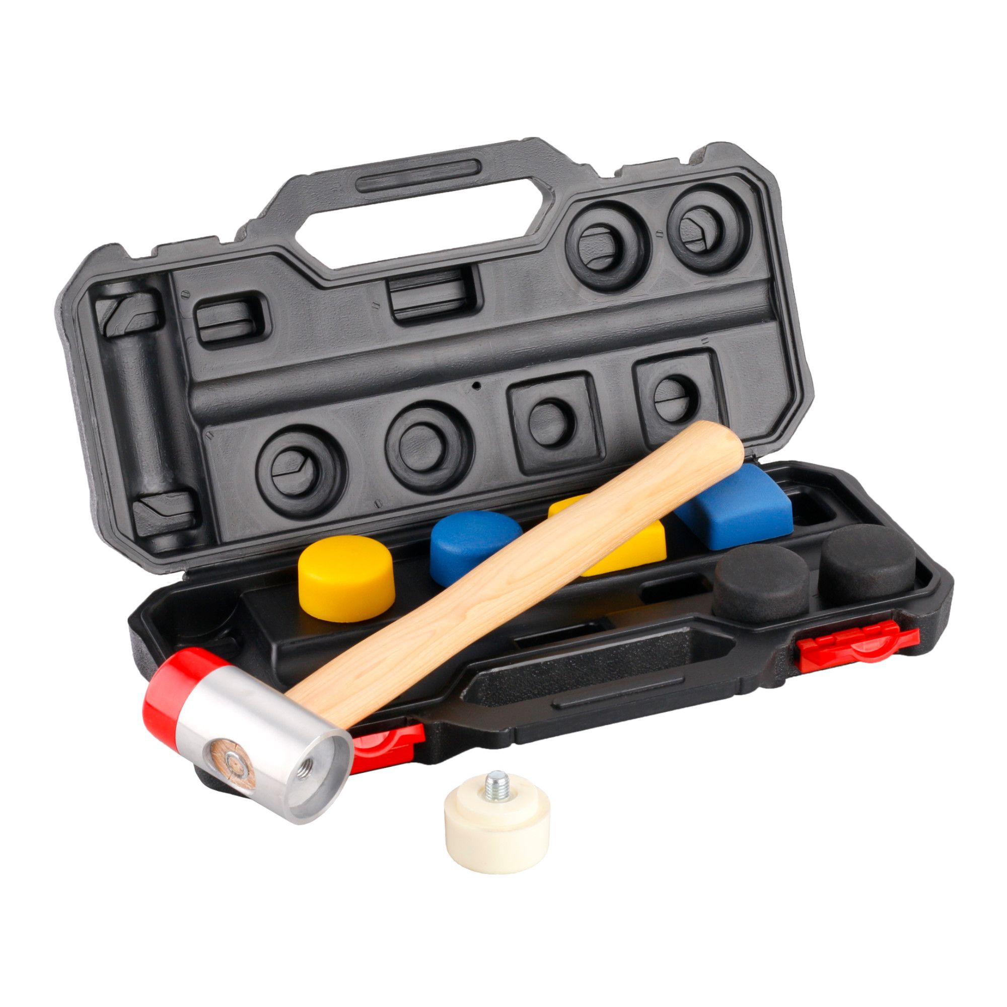 Palička FESTA s vyměnitelnými konci 38 mm je univerzální montážní palice určená pro jemné, kontrolované a nepoškozující údery při montážních, servisních i dokončovacích pracích.Díky výměnným koncovkám různé tvrdosti i tvaru je možné nástroj přesně přizpůsobit konkrétnímu materiálu a typu práce.Součástí je pevná dřevěná násada pro jistý úchop a pohlcování rázů a také praktický plastový kufr, který udržuje všechny koncovky přehledně uspořádané a chráněné při přepravě.Klíčové vlastnosti:• Vyměnitelné koncovky 38 mm – různé tvrdosti a tvary (kruhové i čtvercové) pro maximální univerzálnost• Jemné a šetrné údery bez poškození citlivých povrchů• Dřevěná násada – pohodlný úchop, tlumení vibrací, přesné vedení úderu• Sada v pevném kufru – profesionální vzhled, bezpečné uložení, snadná přeprava• Ideální pro kov, dřevo, plast, instalatérské, truhlářské i montážní práce• Odolné provedení FESTA – dlouhá životnost a spolehlivost při častém použití✔ montážní a servisní práce✔ čalounické a karosářské práce✔ truhlářské a jemné dokončovací operace✔ montáž nábytku, fitingů, kování✔ situace, kde je třeba úder bez rizika poškození povrchu Technické parametry:• Typ: palice s výměnnými konci• Průměr koncovek: 38 mm• Materiál násady: dřevo• Materiál koncovek: různé tvrdosti, různé profily• Balení: plastový kufr s výstelkou• Použití: univerzální montážní a dokončovací prácePalička FESTA s vyměnitelnými konci 38 mm je vysoce univerzální nástroj pro každého profesionála i domácí dílnu. Kombinuje jistý úchop, kvalitní zpracování a možnost výměny hlavic, takže dokonale nahradí několik samostatných palic. Ideální volba tam, kde je potřeba přesný úder bez poškození materiálu.