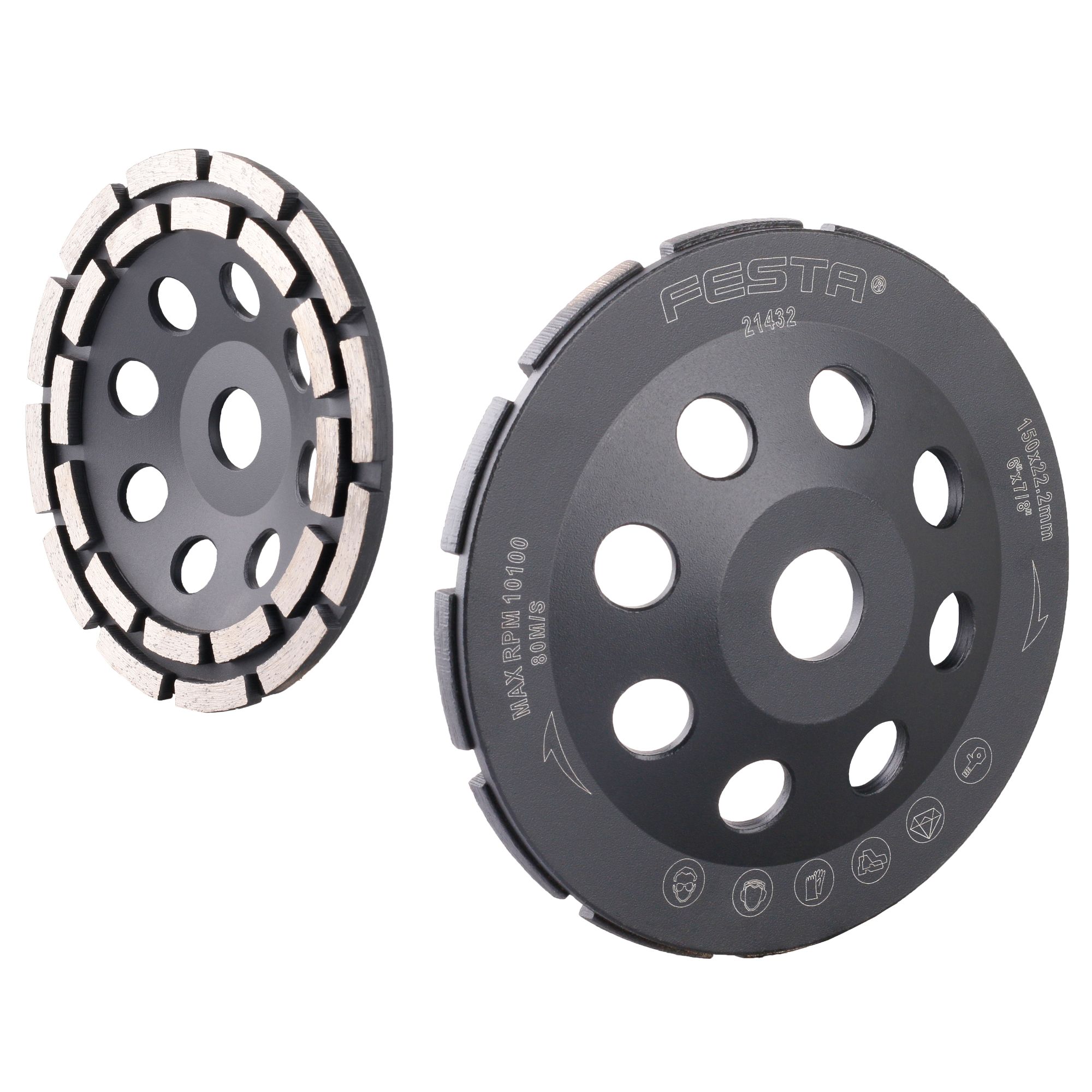 Diamantový brusný kotouč 150 mm – dvouřadý, pro hrubé broušení betonu, zdiva a kameneProfesionální dvouřadý diamantový kotouč o průměru 150 mm je určený pro hrubé broušení tvrdých stavebních materiálů. Díky dvouřadé konstrukci segmentů nabízí vysoký úběr materiálu, rovnoměrné výsledky a zároveň delší životnost při intenzivním používání.Kotouč je složen z masivního nosného talíře z odolné slitiny a dvou řad diamantových segmentů s vysokým obsahem diamantového prachu, které jsou pevně uchyceny ke kotouči a odolávají i silnému zatížení bez rizika uvolnění.Je vhodný pro mokré i suché broušení a ideální pro rychlé odstranění větších nerovností nebo předběžné srovnání povrchu.Klíčové vlastnosti:• Průměr kotouče: 150 mm• Dvouřadá konstrukce segmentů – efektivní a rychlý úběr materiálu• Vysoký obsah diamantového prachu – dlouhá životnost a stabilní výkon• Ideální pro hrubé broušení nerovných a tvrdých povrchů• Masivní nosný talíř ze slitiny – vysoká odolnost proti deformaci• Použití: suché i mokré broušeníVhodné pro hrubé broušení:• Beton• Přírodní a umělý kámen• Cihly, zdivo• Mramor, žula• Obklady, dlažby a další stavební materiályDvouřadý diamantový kotouč 150 mm – ideální nástroj pro rychlé a účinné hrubé broušení na stavbě i v dílně.