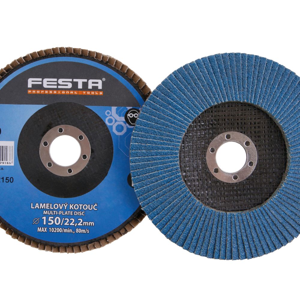 Lamelový kotouč FESTA 150 mm P 40 – výkonné brusivo pro ocel a nerezHledáte kvalitní lamelový kotouč pro efektivní broušení kovových materiálů FESTA 150 mm P 40 je profesionální lamelový kotouč se zrnem z oxidu zirkoničitého, který zaručuje vysoký úběr materiálu, dlouhou životnost a konzistentní výkon i při náročném použití.Díky šikmému tvaru lamel se kotouč snadno přizpůsobí povrchu a umožní precizní broušení i v hůře přístupných místech. Sklolaminátový nosič zajišťuje pevnost, nízkou hmotnost a bezpečnou práci. Oxid zirkoničitý má samoostřící efekt, takže si brusný kotouč zachovává vysokou účinnost po celou dobu používání.Výhody lamelového kotouče FESTA P 40:> Zrno z oxidu zirkoničitého – vynikající brusný výkon a dlouhá životnost > Samoostřící efekt – stálý výkon bez ztráty účinnosti > Šikmé lamely – lepší přístup k hranám a tvarovaným plochám > Odolný sklolaminátový nosič – stabilita, bezpečnost a pohodlná manipulace > Univerzální použití – ideální na ocel, nerez, litinu i titanPoužití:> Broušení a opracování oceli, nerezu, litiny a titanu > Odstraňování rzi, okují a starých nátěrů > Opracování svarů, hran a velkých ploch Vsaďte na kvalitu značky FESTA a vyberte si lamelový kotouč 150 mm P 40 pro profesionální výsledky a efektivní práci!