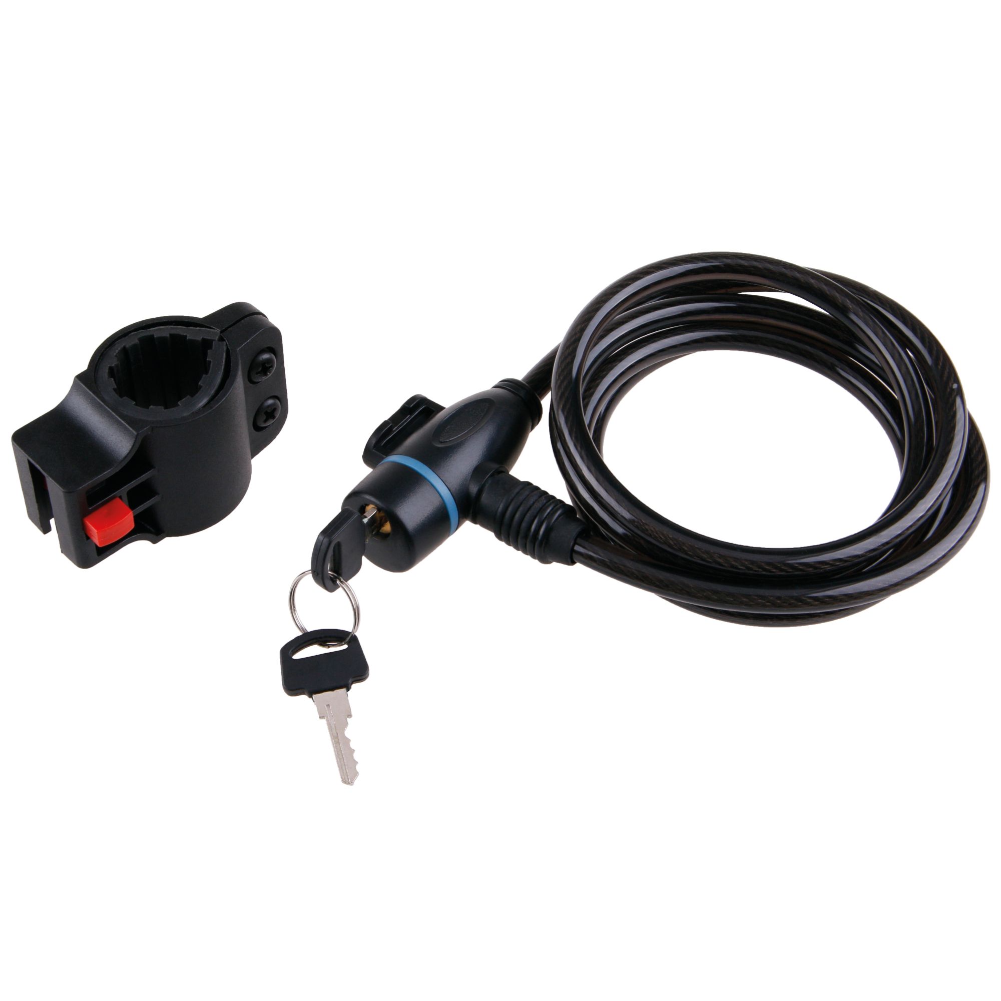Lankový zámek na kolo s klíčem, 8 mm × 150 cm, s držákem na rámBezpečný a praktický zámek na kolo s prodlouženou délkou 150 cm nabízí více možností zamykání – ideální pro připnutí rámu i kola ke stojanu, zábradlí nebo jinému pevnému bodu. Silné ocelové spirálové lanko o průměru 8 mm je chráněno odolným vinylovým pláštěm, který zabraňuje poškození laku.Díky paměťovému tvaru spirály se zámek po použití rychle stáčí do kompaktní podoby. Uzamykání je jednoduché – stačí zacvaknout, bez použití klíče. Součástí balení je plastový držák na rám kola s možností přizpůsobení různým průměrům trubek.Hlavní výhody:• Extra délka 150 cm pro větší flexibilitu• Spirálové lanko s tvarovou pamětí – snadné skladování• Odolný plášť z vinylu – ochrana proti poškrábání• Automatické uzamčení bez klíče• Praktický držák pro upevnění na rám kolaTechnické parametry:• Průměr lanka: 8 mm• Délka lanka: 150 cm• Zámkový systém: na klíč (2 ks v balení)• Materiál: ocel + vinyl• Montáž: držák na rám s nastavitelným průměrem