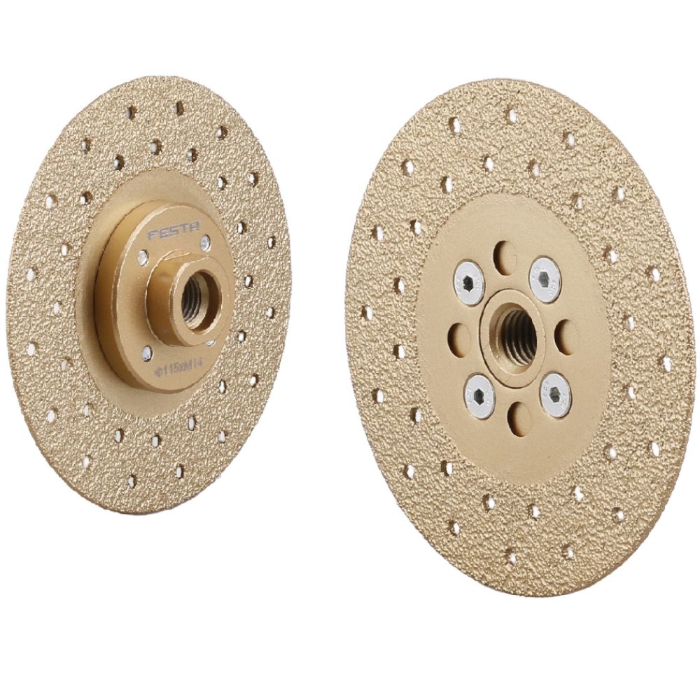 Víceúčelový brusný a řezný kotouč pro použití za sucha i za mokra. Je určený do běžné úhlové brusky. Kotouč je primárně určený na broušení, zkosení hran, zaoblení materiálů a na jejich řezání. Hravě si poradí s materiály jako jsou beton, zdivo, kámen, cihly, žuly, dlaždice, obklady, mramor, břidlice, křemen, sklo, porcelán, keramika a střešních tašky. Kotouč je možné upínat přímo na závit úhlové brusky díky přírubě, která je součástí. Případně po odmontování příruby klasickým způsobem.Průměr kotouče:115 mmMontážní otvor:závit M14 + 22,2 mmŠířka řezné části:2,3 mmMax. otáčky:11 000 ot/min