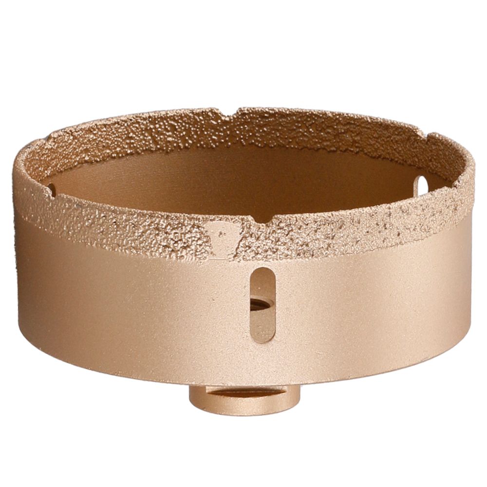 Vykružovací korunka s ostřím z diamantového prachu. Tyto vykružováky jsou určené na vrtání kamene, keramické dlaždice, mramor, žulu a na většinu stavebních materiálů.Tato korunka je určena pro použití v úhlové brusce a pro suché vrtání. Korunka není opatřena vodícím vrtákem a vykružování otvoru tak musí probíhat postupně. Nejprve se "zakousne" hrana pod úhlem cca 45° a následně se korunka srovná kolmo k materíálu a dořezává se celý otvor.