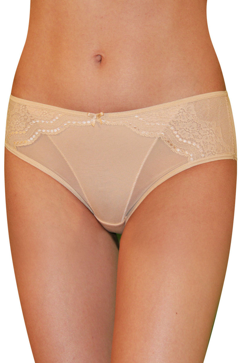 <p><span style="font-family: verdana, geneva, sans-serif;">Figi damskie o klasycznym kroju midi bikini. Boki zabudowane, przód ozdobiony wstawkami koronki o kwiatowym motywie i elastycznej siateczki. </span></p> <p><span style="font-family: verdana, geneva, sans-serif;">Skład: 95% Bawełna, 5% Elastan</span></p>