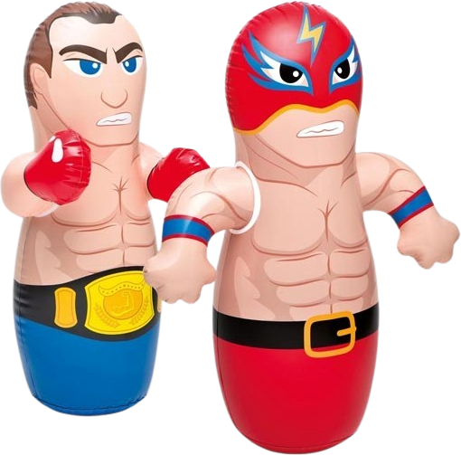 Nafukovací boxovací figurka určená pro vnitřní i venkovní použití. Boxovací panák udrží svou stabilitu díky vodní zátěži umístěné ve spodní části této hračky a lze se s ním tak donekonečna prát. Panák je dostupný ve dvou provedeních a je vyroben z kvalitního pevného vinylu (0,20mm). Výrobek není primárně určen do vody, ale je vhodný pro širokou škálu venkovních aktivit. Zajímavá hračka pro vaše děti. Rozměry 91 x 51 cm (boxer), 91 x 72 cm (wrestler). Rozměry balení 13 x 19 x 5 cm. Vhodné pro děti od 3 let.