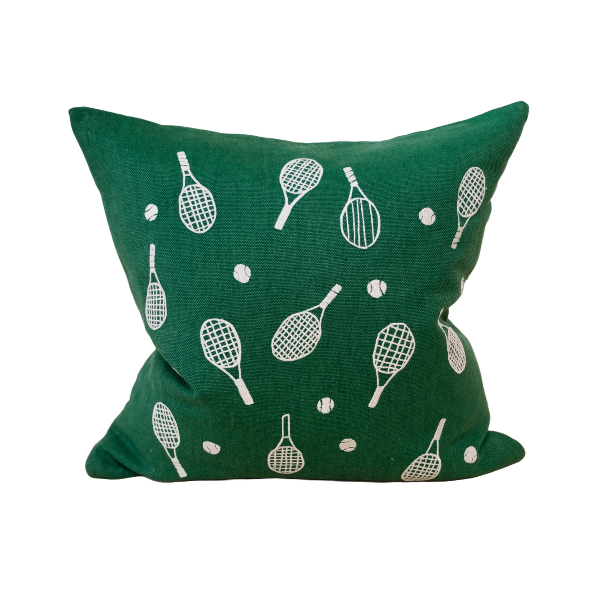 Na zeleném lněném podkladu se vyjímají vyšívané tenisové rakety, které dodávají povlaku hravý design. Do vaší ložnice nebo na pohovku vnese sportovního ducha a potěší všechny příznivce tohoto oblíbeného bílého sportu.