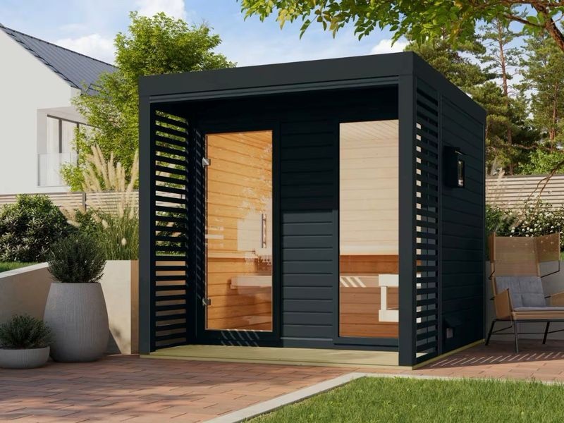 Venkovní finská sauna, stěna 38 mm, vnější rozměry š 231 x h 276 x v 232 cm, určeno pro 2 osoby. Zakupte produkt Finská sauna – KARIBU ARES 2 (antracit / antracit) z kategorie Heureka.cz | Dílna, stavba, zahrada | Zahrada | Saunování | Infrasauny a sauny za cenu 122490 Kč.