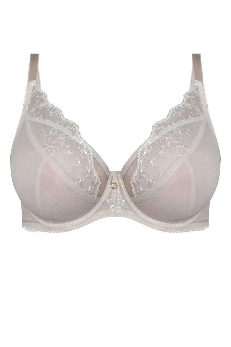 Měkká podprsenka, košíčky z kvalitní strukturální síťoviny, na které je našita krajka s květinovým motivem. Jemné jako mlha, absolutní hit na léto pod lehké halenky pro dámy, kteréónemají rády nudu v základním prádle! Konstrukce ideální pro střední až velké poprsí. Skład: 85% Poliamid, 10% Elastan, 5% Poliester