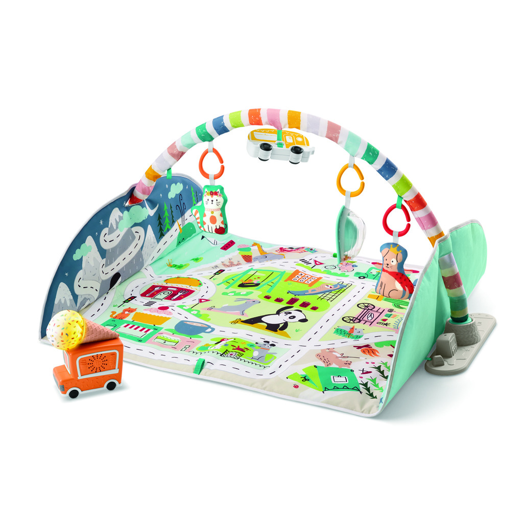V tomto miminkovském městečku pejsci šustí, kočičky cinkají a lesklé karavany létají po obloze. Panda a lenochod jsou parťáci na cvičení a zmrzlinářské auto zásobuje zasněžené hory dobrotami. Fisher-Price® Hrací dečka s aktivitami nabízí téměř 120 cm místa pro vaše děťátko, které jej může prozkoumávat, zatímco leží a hraje si, pase koníčky nebo sedí a pozoruje vše kolem sebe. Dečka obsahuje 7 hraček včetně zrcátka a odolných hraček, které jsou připevněny k odnímatelné hrazdičce. A k tomu všemu ještě tahací zmrzlinářské auto, které přehraje až 25 minut hudby. Jak vaše děti rostou, dečka se stane dráhou, po které batolata mohou přesouvat vozidla z farmy přes zasněžené vrcholky hor až do města.