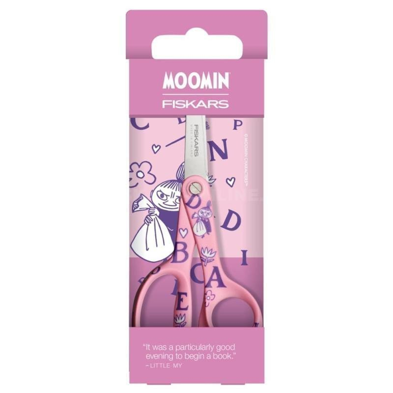 Oblíbené dětské nůžky Fiskars Moomin Litle My ABC vyrobené z kvalitních materiálů s návrhy podle slavných knih Tove Janssonové s Mumínky. br Držadla jsou speciálně navržená tak, aby dobře padla do dětské ruky. br Čepele z nerezové oceli s bezpečnými zaoblenými špičkami. br Nůžky mají nastavitelný přítlak čepelí. br Nůžky jsou určené pro praváky. br Vyrobené ve Finsku. br