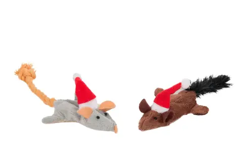 Flamingo Vánoční myš plyšová s catnipem pro kočky 2ks