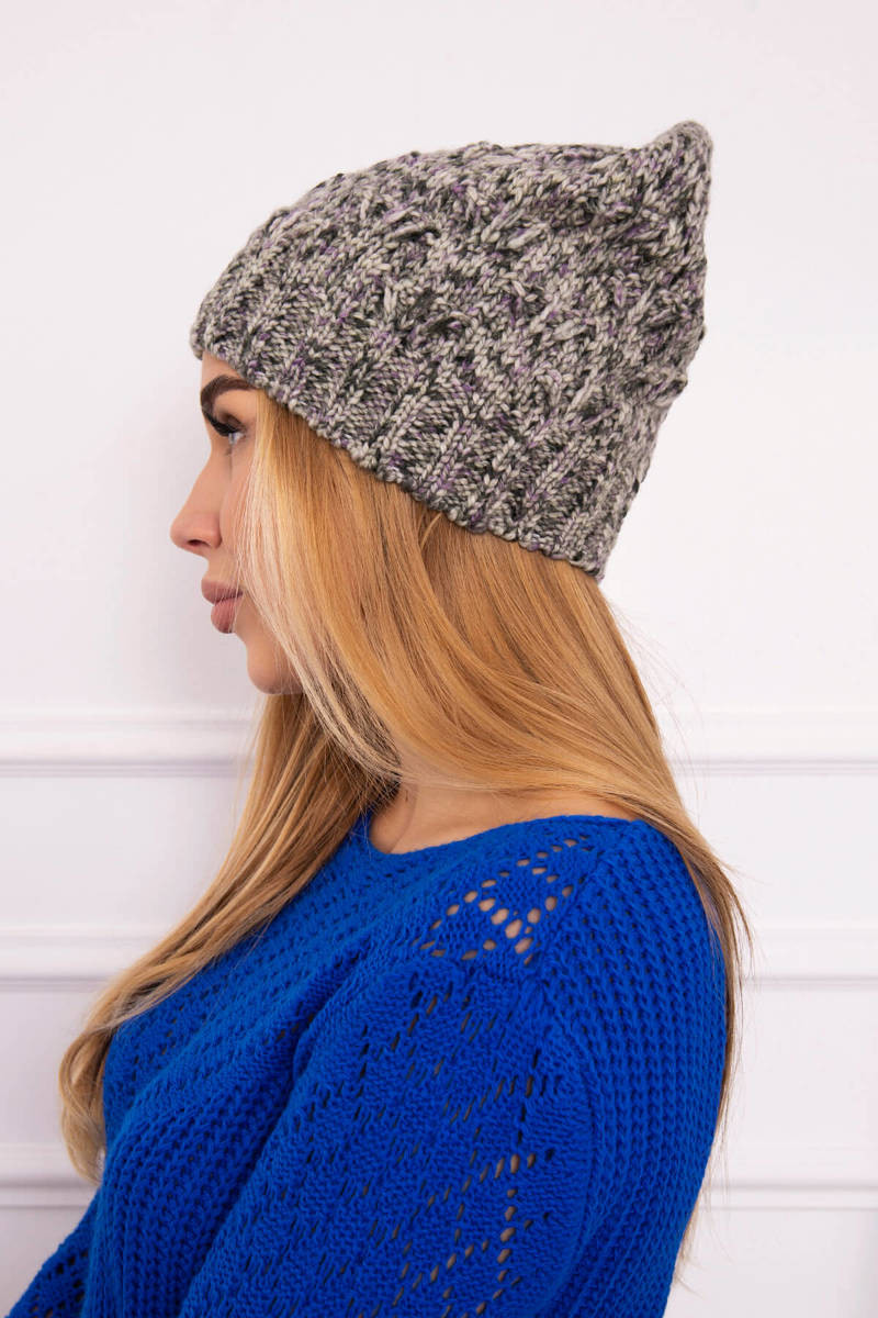 Fleecová čepice Roksana K209 šedá+fialová+ecru UNI