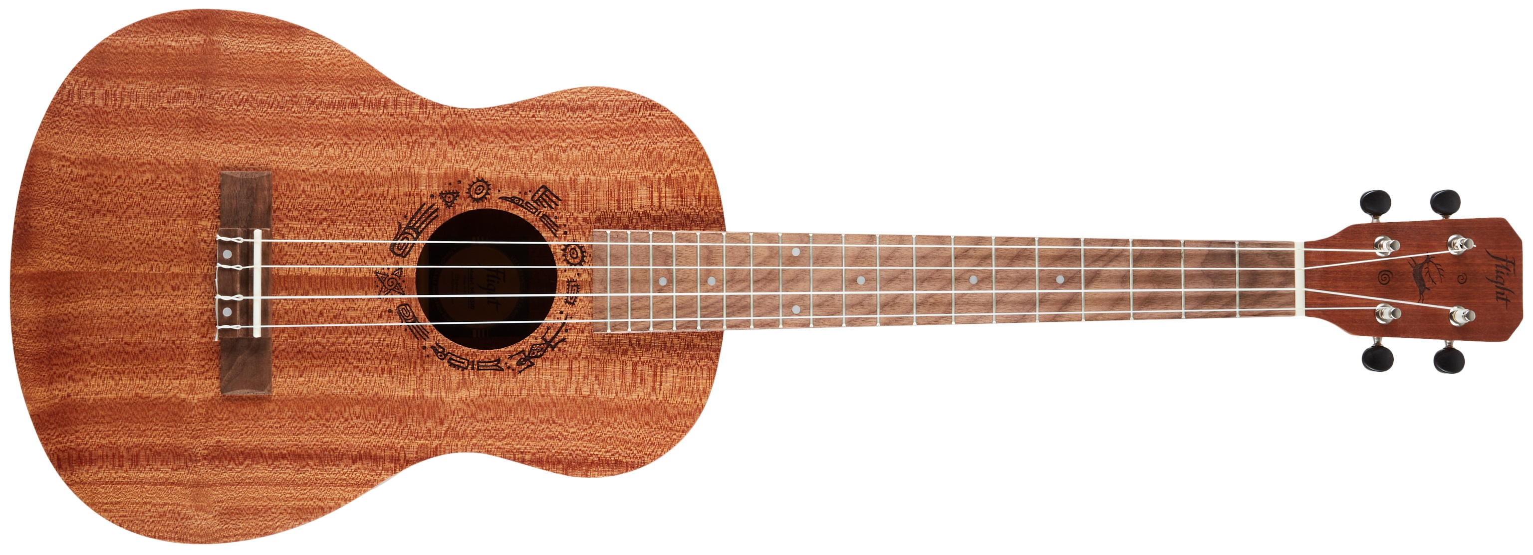 Akustické ukulele Řada Natural Series značky Flight nabízí cenově dostupné modely ukulelí s tradičním přírodním/designem dřev vhodné pro začínající ukulelisty a ukulelistky. Tělo tohoto barytonového ukulele je zhotoveno z laminovaného sapele, dřeva botanicky příbuzného s mahagonem/pravým mahagonem (proto bývá označováno jako sapele mahogany). Krk a hmatník nástroje jsou vyrobeny z afrického okoumé a ořechu, což je rovněž poměrně často používaná kombinace dřev. Struny jsou přes nultý a sedlový pražec z kosti