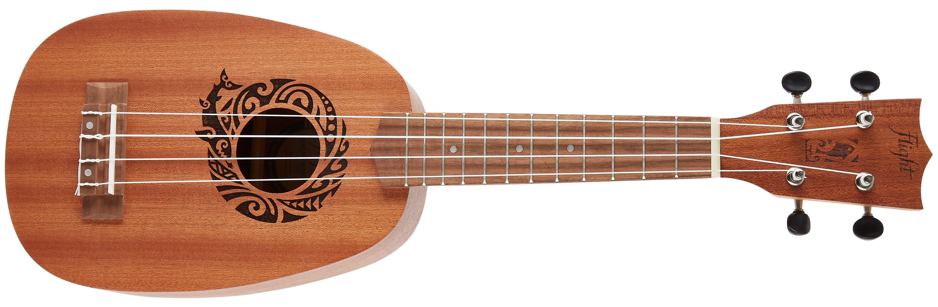 Akustické ukulele Řada Natural Series značky Flight nabízí cenově dostupné modely ukulelí s tradičním přírodním/designem dřev vhodné pro začínající ukulelisty a ukulelistky. Tělo tohoto sopránového pineapple ukulele je zhotoveno z laminovaného sapele, dřeva botanicky příbuzného s mahagonem/pravým mahagonem (proto bývá označováno jako sapele mahogany). Větší plocha přední desky tzv. ananasových ukulelí zaručuje větší hlasitost nástroje a plnější tón, než nabízí modely se standardním tvarem těla. Krk a hmatní