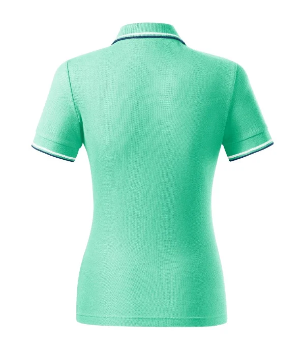 lehce vypasovaný střih s bočními švy límeček z žebrového úpletu 1:1 2 kontrastní proužky na rukávu a límečku úzká léga s 4 knoflíčky v barvě materiálu spodní knoflíček přišitý kontrastní nití vnitřní průkrčník začištěn kontrastní páskou zpevnění ramenních švů páskou rozparky v bočních švech s kontrastní páskou zboží II. jakosti, na zboží II. jakosti se nevztahuje reklamace