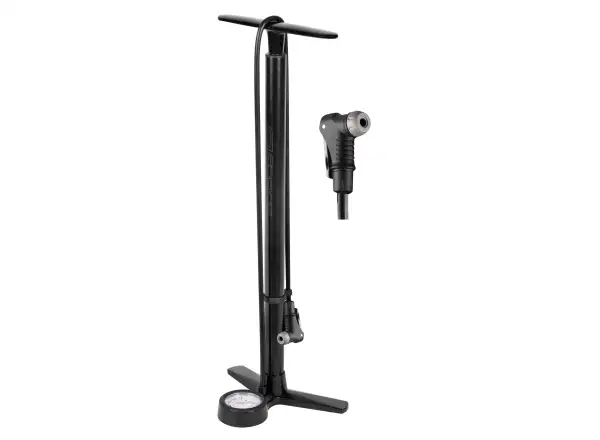 Velká podlahová hustilka Force Magna 2.0 AL je ideální pro domácí dílnu i pravidelnou údržbu kola. Hliníkové tělo zajišťuje lehkost a zároveň vysokou odolnost. Díky ergonomické rukojeti se dobře drží i při vyšším tlaku. Dvoupolohová hlava je kompatibilní se všemi běžnými typy ventilků (AV, FV, DV), což z ní dělá univerzální nástroj pro každé kolo. Přehledný manometr ve spodní části ukazuje tlak až do 11 bar / 160 psi. Pogumovaná základna zajišťuje stabilitu během pumpování. Výška hustilky je 62 cm, součástí balení je i hadička s uzamykatelnou hlavicí.