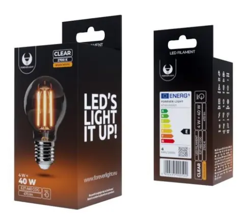 Forever LED žárovka E27 A60 4W (teplá bílá - clear) / Patice E27 / 2700K / 4W / 470 lm / 15000h