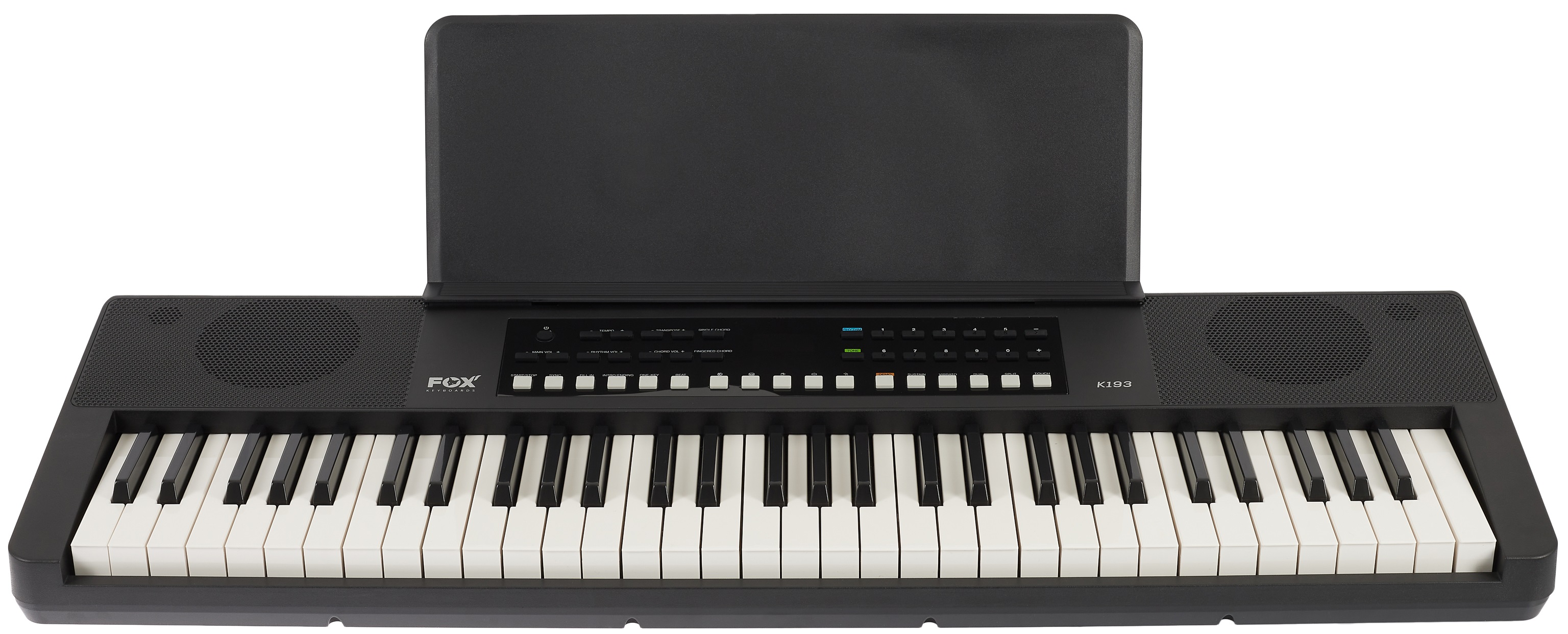 Klávesy bez dynamiky FOX Keyboards K193 je jednoduchý keyboard se 61 standardními klávesami a mechanikou bez dynamiky úhozu. Tento cenově dostupný nástroj skvěle poslouží pro první seznámení s elektronickými keyboardy, přičemž nabízí poměrně rozsáhlou knihovnu se 300 zvuky, dále 300 rytmických doprovodů a 80 demo songů. To, že FOX K193 není žádnou hračkou potvrzuje výčet dalších pokročilých funkcí, kterými většinou disponují mnohem dražší nástroje. K dispozici vám budou tyto funkce: tempo,