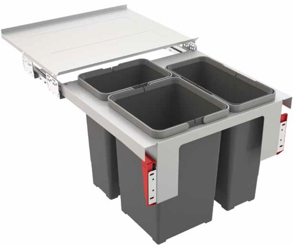 vhodné pro skříňky o vnější šířce korpusu 500mmminimální montážní otvor: 462 x 399 x 375mmcelková výška 360mmobjem košů 8l + 12l + 17lsoučástí je 1x samostatné víko na 8l koš a plnovýsuv s tlumením
