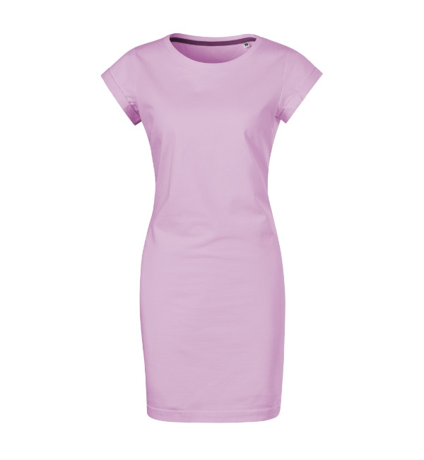 bez etikety - připraveno na rebranding volný, lehce tvarovaný střih s bočními švy délka nad kolena hlubší kulatý výstřih úzký lem průkrčníku z vrchového materiálu s 5 % elastanu neutrální velikostní štítek v boční části průkrčníku vnitřní část průkrčníku začištěna páskou v barvě 36 zpevňující páska od ramene k rameni ohrnuté rukávy zachycené ve 4 bodech šitím