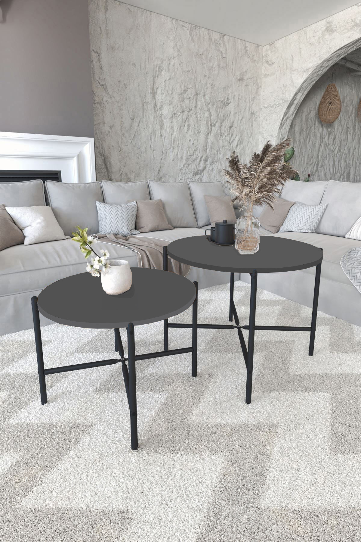 2-dílný konferenční stolek BORIS - antracit Moderní industriální vzhled a praktičnost v jednom - to jsou konferenční stolky BORIS. Menší, větší nebo oba dva, dvojice konferenčních stolků BORIS v loftovém stylu dokonale zapadne do každého obýváku a díky svého jedinečného uspořádání tak pomáhají šetřit místo. Na výběr ve třech nejpopulárnějších barevných variantách: dub safír, bílá a antracit. PROVEDENÍ dodáváno v rozloženém stavu nábytek je vyroben z 18mm dřevotřískové desky v souladu s 1. třídou evropských norem kvality E1 kovový podstavec stolků je nalakován elektrostatickou práškovou barvou odolnou proti korozi a poškrábání snadné sestavení do několika minut veškeré komponenty k sestavení i přehledný návod v balení ROZMĚRY velkého stolku Šířka: 65 cm Výška: 50 cm rozměry malého stolku Šířka: 55 cm Výška: 40 cm