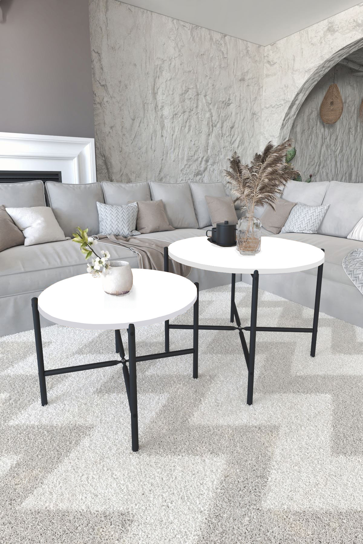 2-dílný konferenční stolek BORIS - bílý Moderní industriální vzhled a praktičnost v jednom - to jsou konferenční stolky BORIS. Menší, větší nebo oba dva, dvojice konferenčních stolků BORIS v loftovém stylu dokonale zapadne do každého obýváku a díky svého jedinečného uspořádání tak pomáhají šetřit místo. Na výběr ve třech nejpopulárnějších barevných variantách: dub safír, bílá a antracit. PROVEDENÍ dodáváno v rozloženém stavu nábytek je vyroben z 18mm dřevotřískové desky v souladu s 1. třídou evropských norem kvality E1 kovový podstavec stolků je nalakován elektrostatickou práškovou barvou odolnou proti korozi a poškrábání snadné sestavení do několika minut veškeré komponenty k sestavení i přehledný návod v balení ROZMĚRY velkého stolku Šířka: 65 cm Výška: 50 cm rozměry malého stolku Šířka: 55 cm Výška: 40 cm