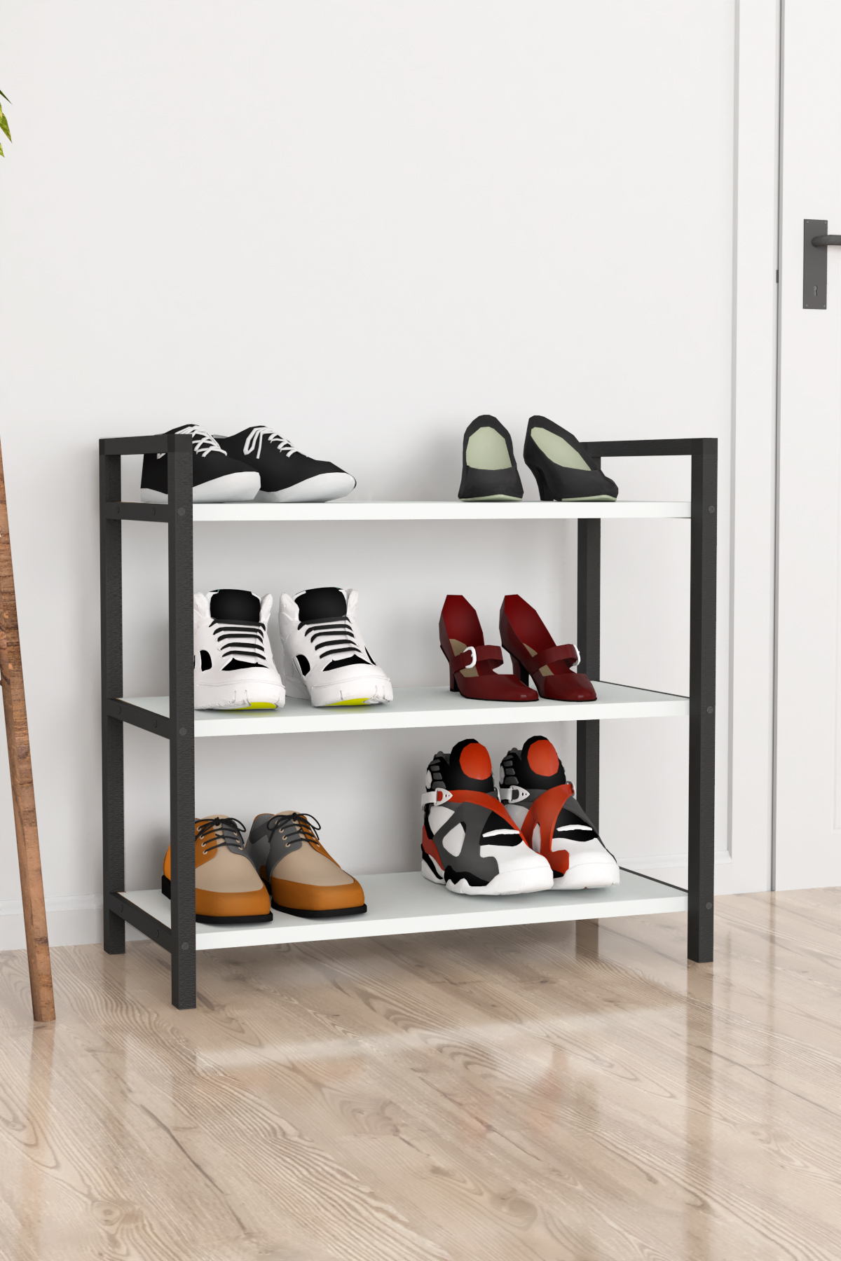Botník LESEK - bílý Praktický botník LESEK v loftovém stylu - kombinace moderního a kompaktního provedení. Tři prostorné police z kvalitní dřevotřískové desky zajistí dostatek prostoru pro obuv, zatímco nalakovaný kovový rám zajistí dlouhodobé využití nábytku po spoustu let. Neobvyklý industriální design jistě svým vzhledem zaujme i potěší. Díky flexibilní nabídce nejpopulárnějších barevných provedení snadno zapadne do každého interiéru: dub safír, bílá a antracit. PROVEDENÍ dodáváno v rozloženém stavu botník je vyroben z 18mm dřevotřískové desky v souladu s 1. třídou evropských norem kvality E1 kovový rám regálu je nalakován elektrostatickou práškovou barvou odolnou proti korozi a poškrábání snadné sestavení do několika minut veškeré komponenty k sestavení i přehledný návod v balení ROZMĚRY Šířka: 66 cm Hloubka: 36 cm Výška: 70 cm