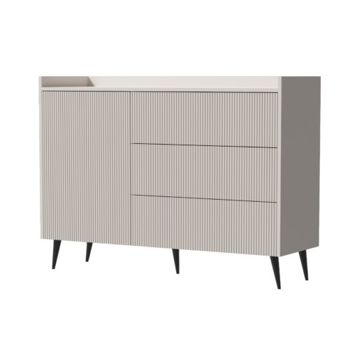 ADEMO - Nábytek ideální do obývacího pokoje ADEMO je unikátní sada nábytku do obývacího pokoje v moderním prostředí a krásných kašmírových barvách. Tato stylová řešení jsou navržena s důrazem na nejmenší detaily a budou ozdobou každého obývacího pokoje a zároveň zajistí maximální pohodlí při používání. Jedná se o bezúchytkový systém s vysokými černými nohami a čely z MDF desky. Korpusy jsou vyrobeny z nejkvalitnějších domácích surovin s využitím moderních mechanismů, které zvyšují pohodlí při používání.Nejlepší nábytek do obývacího pokoje - funkční a elegantní Sestava nábytku do obývacího pokoje ADEMO se skládá z: police, nočního stolku a komod a televizních skříněk, které jsou k dispozici v různých variantách. Sada dokonale zapadá do minimalistických interiérových trendů, které již mnoho sezón nevycházejí z módy. Systém se vyznačuje elegantním designem a funkčností. Do místnosti vnáší nádech svěžesti a kreativity. Snadno se přizpůsobí potřebám moderního obývacího pokoje. ROZMĚRY šířka - 126 cm výška - 92 cm hloubka - 41 cm
