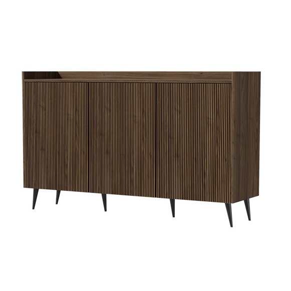 ADEMO - Stylový a funkční nábytek pro každý styl Nábytek s drážkovanými čely je jedním z nejžhavějších trendů v interiérovém designu. Jedinečný vzhled a vysoká praktická hodnota obývacího nábytku ADEMO se vyznačují expresivním stylem a originalitou. Drážky v kombinaci s krásnou barvou ořechového dřeva jim dodávají elegantní hloubku. Představovaná sada obývacího nábytku je ideálním řešením pro lidi, kteří hledají vizuálně atraktivní prvky vybavení bytu a nabízejí dostatek prostoru pro uložení věcí. Univerzalismus s nádechem sofistikovanosti Nábytek s drážkovanými čely se perfektně hodí do různých interiérových designových projektů - od moderního až po klasický. Nezahlcují prostor a umožňují vám jej uspořádat podle vlastních preferencí. S obývacím nábytkem ADEMO si můžete vytvořit interiér, který je přátelský k členům domácnosti. Tato univerzální sada splňuje očekávání náročných uživatelů z hlediska standardů kvality. Hodí se do malých i větších místností s typickým i nestandardním uspořádáním. ROZMĚRY šířka - 150 cm výška - 92 cm hloubka - 41 cm