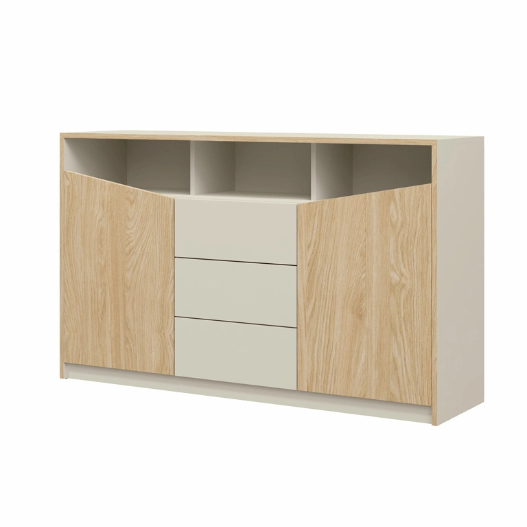 ASTON – moderní ložnice s charakterem Kolekce ASTON je promyšlený design ložnicového nábytku, který kombinuje eleganci jednoduchých forem s výraznými detaily. Charakteristické diagonální vložky v dekoru přírodního dubu prolamují monotónnost hladkých čel a dodávají kolekci moderní, geometrický charakter. ASTON přitahuje pozornost nejen svou originální designovou linií, ale i rafinovanými barvami – na výběr jsou dvě varianty: béžová s dubem nebo černá s dubem. Díky tomu se kolekce perfektně hodí do různých interiérových designů – od světlých a tlumených až po výraznější a kontrastnější. Přirozená rovnováha nebo výrazný kontrast – vyberte si ASTON béžová + dub je návrh pro milovníky světlých, uklidňujících prostor. Šedobéžové korpusy a čela v kombinaci s teplým dřevěným dekorem vytvářejí interiér plný světla, ideální pro odpočinek a relaxaci. Tuto verzi si zamilují lidé, kteří oceňují skandinávský styl, japandi nebo jemný minimal. ASTON černá + dub je naopak kombinací pro ty, kteří mají rádi odvážné kombinace. Tmavá černá zdůrazňuje strukturu dřeva a vytváří silný, moderní kontrast. Je ideální volbou pro interiéry v loftovém, industriálním nebo moderním klasickém stylu. Další prvky jsou k dispozici v našich dalších nabídkách na kartě souvisejících produktů. PROVEDENÍ Dodáváno v rozloženém stavu pro vlastní montáž. Jasný a přehledný návod v balení. Vyrobeno z laminované nábytkové desky. Velmi velká kapacita díky prostorné polici a zásuvce. Vysoce kvalitní zpracování, které vám umožní produkt užívat si po mnoho let. Hrany byly vyztuženy ABS dýhou pro zajištění větší odolnosti produktu. ROZMĚRY šířka - 150 cm výška - 91 cm hloubka - 41 cm Rozměrová tolerance +/- 3 cm.