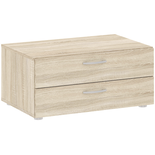 Začněte vybavovat svůj domov se sestavou BASIC - jednoduchý, elegantní a praktický nábytek, který se hodí do každého interiéru! Tato řada zahrnuje komody a šatní skříně, které vám pomohou uspořádat váš prostor s lehkostí. Vybrat si můžete ze dvou nadčasových barevných variant – klasické bílé nebo oblíbeného dekoru dub sonoma. Sestava BASIC nabízí funkční a minimalistický design, který je ideální pro ložnice, předsíně, studentské pokoje nebo obývací prostory. Jednoduché a čisté linie v kombinaci s kvalitním materiálem vytvářejí odolný nábytek, který skvěle zapadne do moderních i tradičních stylů bydlení. Řada BASIC je navržena s ohledem na maximální využitelnost a flexibilitu. Komoda se dvěma zásuvkami je kompaktní a ideální pro menší předměty, zatímco delší komoda se čtyřmi zásuvkami nabízí dostatek úložného prostoru pro oblečení i doplňky. Obě varianty jsou skvělé pro udržení pořádku. Skříně BASIC jsou k dispozici ve dvou velikostech: s dvěma nebo třemi dveřmi. Vnitřní uspořádání skříní kombinuje prostor pro zavěšení oblečení s praktickými policemi, což vám umožní efektivně uspořádat veškerý obsah. Díky modulárnímu designu můžete jednotlivé kusy snadno kombinovat a přizpůsobit tak nábytek přesně vašim potřebám a rozměrům místnosti. Vyřešte úložné prostory chytře a vkusně se sestavou BASIC! PROVEDENÍ čela z MDF desek plastové úchytky plastové nožky PVC zakončení hran ROZMĚRY Šířka - 74 cm Výška - 35 cm Hloubka - 52 cm Rozměrová torelance +/- 3 cm.