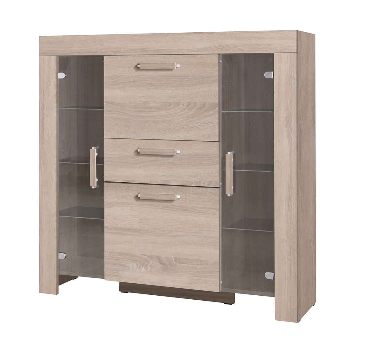 Komoda P15 140cm Barva korpusu: Bílá, Lišta: Dub - sonoma, Barva dvířek: Bílá