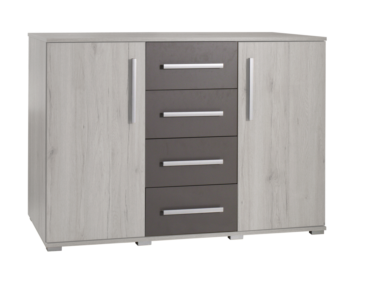 Rozměry: výška 90 cm šířka 130 cm hloubka 47 cm Barva: borovice norská / šedá Ložnice "Dione" je nejnovější nabídkou z továrny na nábytek Maridex. Zahrnuje řadu praktických prvků, včetně prostorné skříně s posuvnými dveřmi, LED osvětlením a hliníkovými bočními profily, stejně jako pohodlná postel se zvýšeným rámem a nádobou na ložní prádlo, komoda a noční stolky. Systém je vyroben z vysoce kvalitní laminované desky borovice norská. ABS hrana chrání hrany před mechanickým poškozením. Prvky systému jsou ideální pro vybavení moderní ložnice. Osvětlení použité ve skříni a výběr vhodných doplňků vytvoří jedinečný a útulný interiér.