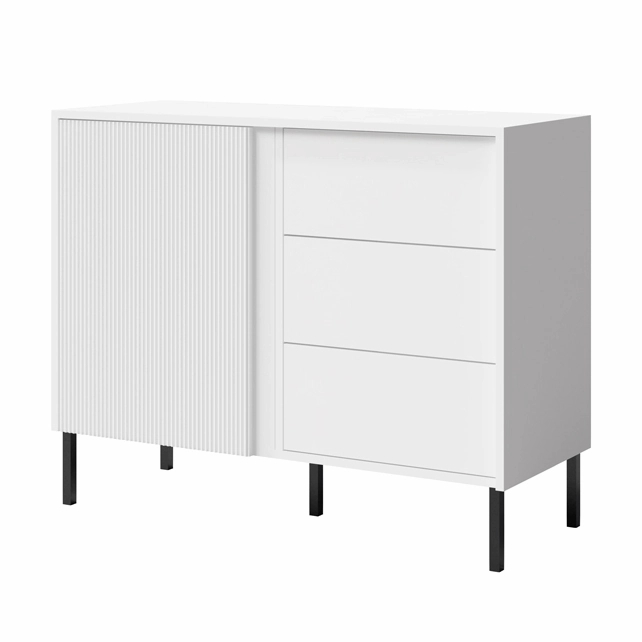 MIA – bílá v moderním provedení Nábytková sestava MIA v kompletně bílém provedení je ztělesněním svěžesti a lehkosti. Hladké, matné povrchy v jednotné bílé barvě dodávají interiéru prostornost a eleganci a zároveň zůstávají světlé a harmonické. Minimalismus s elegancí Bílá kolekce MIA je ideální volbou pro milovníky jednoduchosti a čistých forem. Díky modernímu designu a jemným detailům se nábytek hodí jak ke skandinávskému stylu, tak k modernímu minimalismu. Černé kovové nohy decentně kontrastují s bílou a dodávají celku lehce industriální nádech. Praktičnost a estetika Funkční uspořádání skříněk, zásuvek a polic poskytuje pohodlné úložné prostory a bílá barva se snadno sladí s jakýmkoli uspořádáním. Nábytek MIA rozjasní prostor a dodá mu moderní, uspořádaný vzhled. Zvolte bílou kolekci MIA – pro interiéry, které chtějí dýchat prostorem a světlem. ROZMĚRY šířka - 100 cm výška - 80 cm hloubka - 41 cm Rozměrová tolerance +/- 3 cm.