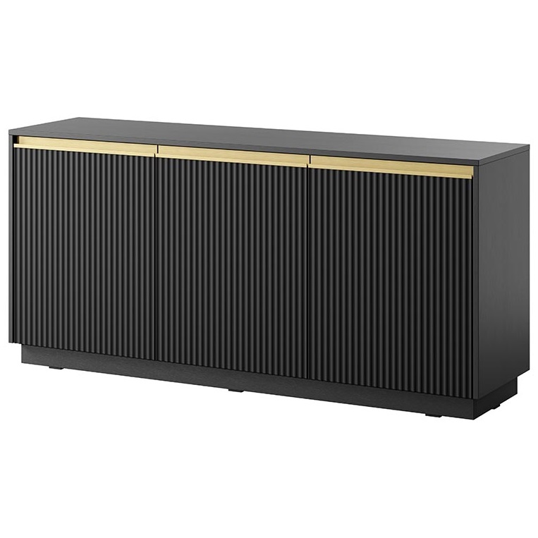 Nábytková sestava ROYAL – Elegance a moderní design pro váš domov Objevte nábytkovou sestavu ROYAL, která přináší do vašeho interiéru kombinaci elegance a moderního designu. Tato unikátní kolekce je charakteristická svým rýhovaným dekorem na čelních plochách, který dodává nábytku sofistikovaný vzhled a zajímavou texturu. Zlaté horizontální úchyty diskrétně doplňují celkový design a podtrhují jeho exkluzivitu. Sestava ROYAL je navržena tak, aby dokonale ladila s různými styly bydlení a stala se dominantou každého obývacího pokoje. Dostupnost a variabilita Nábytková sestava ROYAL je dostupná ve třech elegantních barevných variantách: nadčasové bílé elegantní černé jemné béžové. Díky této široké škále barev si můžete vybrat tu, která nejlépe doplní váš stávající interiér a osobní styl. Ať už preferujete světlé a vzdušné prostory, nebo dáváte přednost výraznějším tónům, ROYAL vám umožní vytvořit harmonický a funkční domov. Sestava nabízí dostatek úložného prostoru a promyšlené řešení pro moderní bydlení. PROVEDENÍ Vysoce kvalitní laminovaná dřevotřísková deska Hrany dodatečně zakončené ABS dýhou MDF deska Pevné a stabilní kovové nožky Bezúchytkový systém otevírání Odolná a pevná konstrukce Nábytek pro svépomocnou montáž, dodáván v rozloženém stavu s návodem ROZMĚRY Šířka - 154 cm Výška - 72 cm Hloubka - 39 cm Rozměrová tolerance +/- 3 cm.