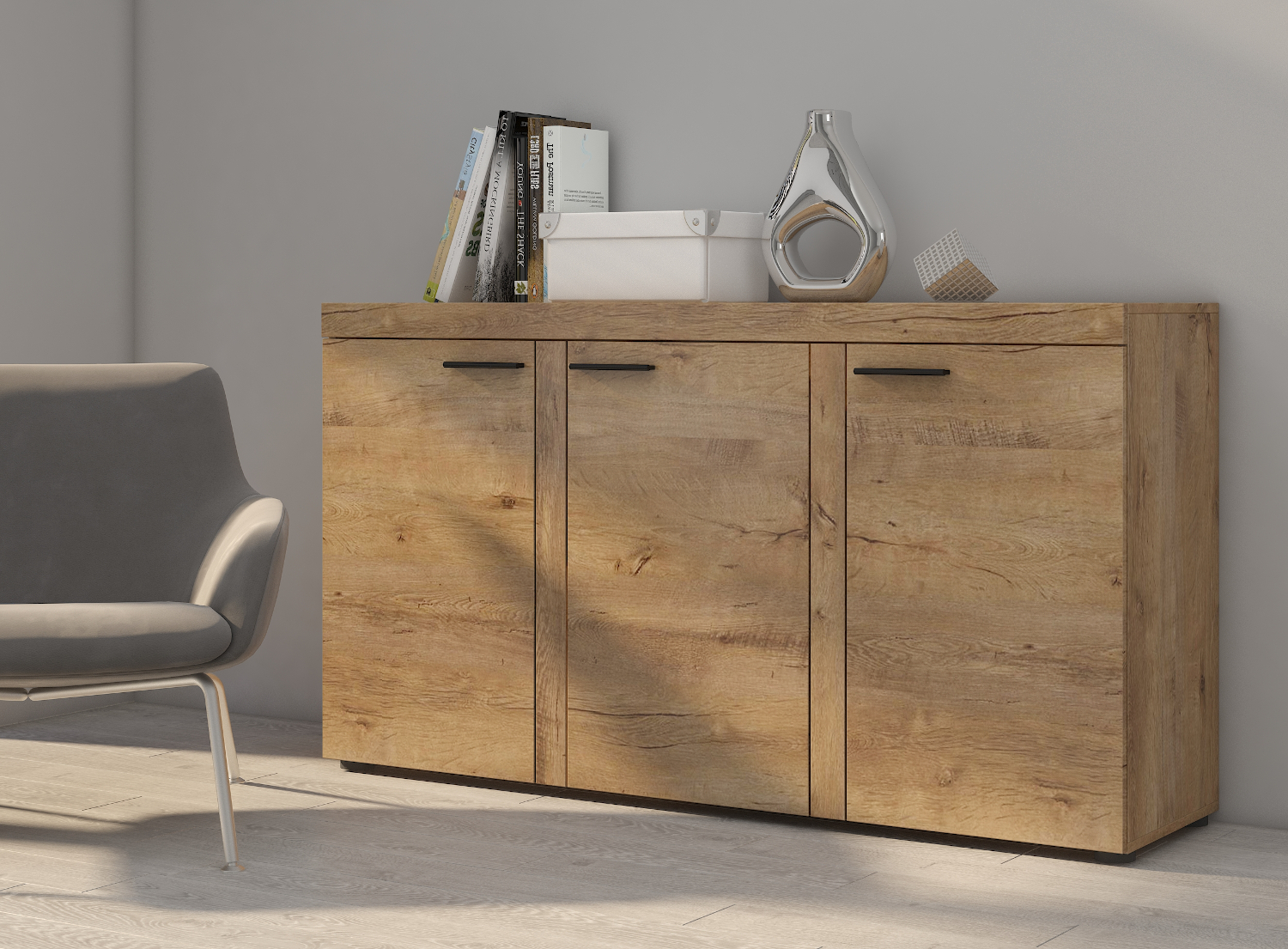 Komoda P27 130 cm Barva korpusu: Šedá, Lišta: Šedá, Barva dvířek: Šedá
